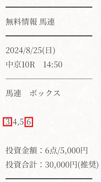 点数を絞りわずか6点で的中に導いた情報精査力!
