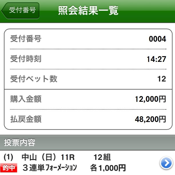 久しぶりの100万円越え的中おめでとうございます! スプリングステークスより金鯱賞の方が荒れるかなって思ったけどこっちの方が大荒れ10万馬券! 一撃1,708,700円的中は嬉しすぎます!毎度感謝です!