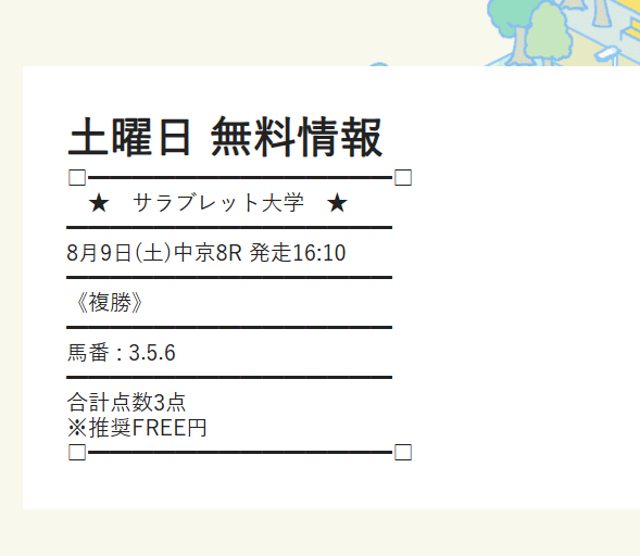 約束された万馬券の買い目が届く!