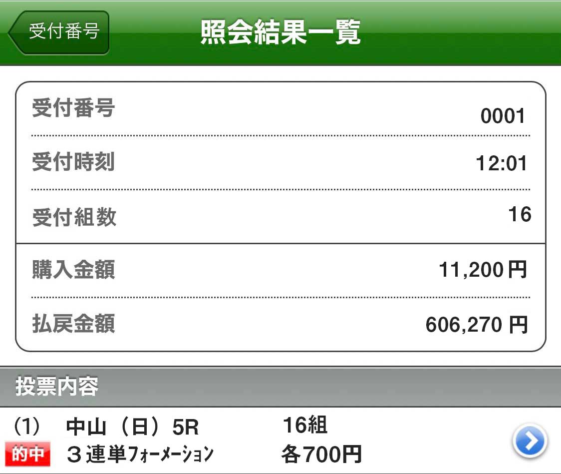 100円で買っていても7万2千円とめっちゃ嬉しい的中!
