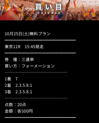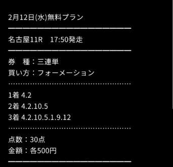 約束された万馬券の買い目が届く!
