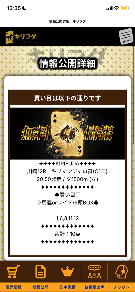 昨日(12/18)の無料予想で2着10番人気の当てて全馬券種で8万700円的中! 美味しすぎる予想!皆さん使ってますよね?