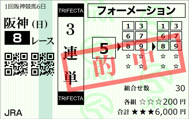 週末の阪神8R、これ取れてるの普通に強い。メイショウカスガイからあの組み合わせで200万はうまい。